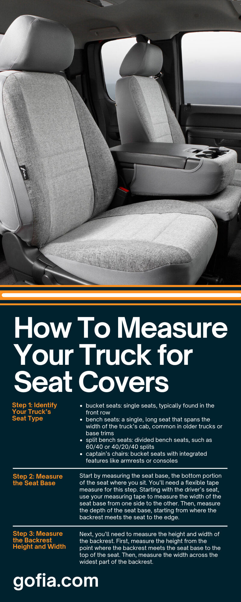 If your truck has power seating, measure the distance from the control panel to the edge of the seat base. You want to guarantee your seat cover doesn’t interfere with the controls.